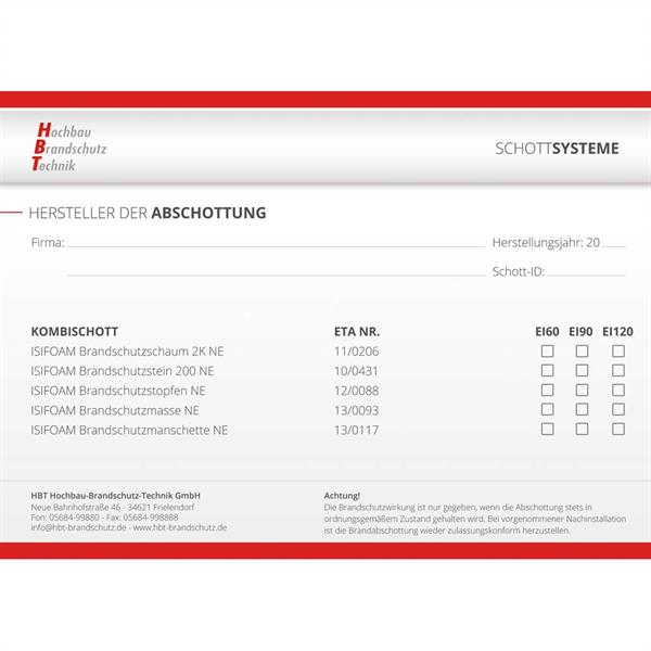 GPSR Herstellerinformationen HBT Hochbau-Brandschutz-Technik GmbH Neue Bahnhofstraße 46 34621 Frielendorf Deutschland Tel.: +49 5684 99880 Fax: +49 5684 998888 E-Mail: info@hbt-brandschutz.de Web: www.hbt-brandschutz.de GPSR Kontaktdaten der verantwortlichen Person Christian Schröder HBT Hochbau-Brandschutz-Technik GmbH Neue Bahnhofstraße 46 34621 Frielendorf Deutschland Tel.: +49 5684 99880 Fax: +49 5684 998888 E-Mail: info@hbt-brandschutz.de Web: www.hbt-brandschutz.de