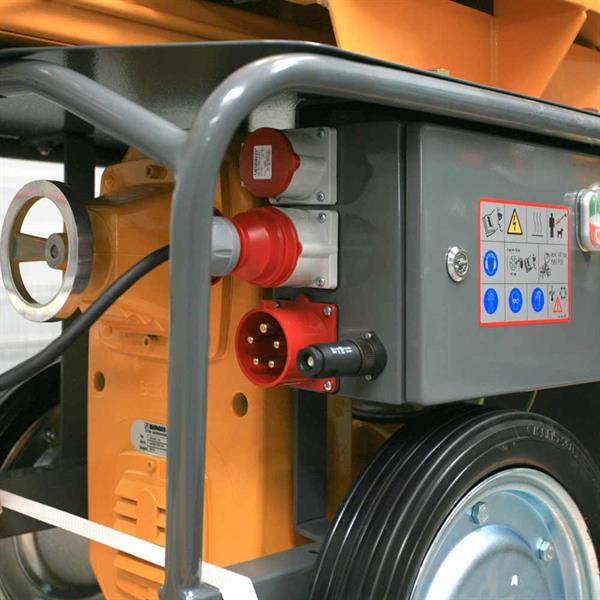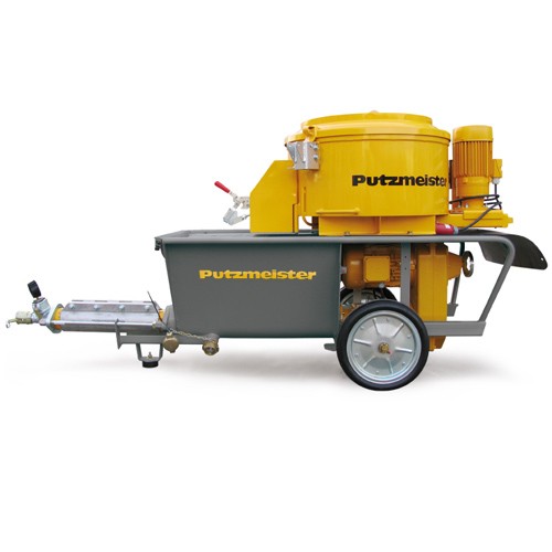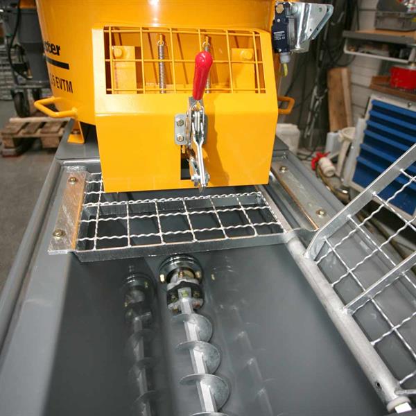 Version Schneckenpumpe mit Tellermischer. Leistungsstarkes, modulares System, das durch einfach austauschbare Pumpenteile bzw. den Aufbau eines Tellermischers universell einsetzbar ist. Mit 32 A Anschluss sogar wirtschaftlich auf kleinen Baustellen.
