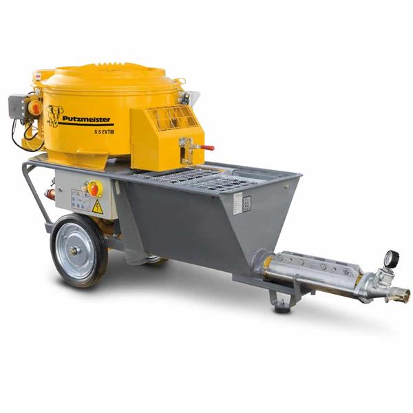 Version Schneckenpumpe mit Tellermischer. Leistungsstarkes, modulares System, das durch einfach austauschbare Pumpenteile bzw. den Aufbau eines Tellermischers universell einsetzbar ist. Mit 32 A Anschluss sogar wirtschaftlich auf kleinen Baustellen.