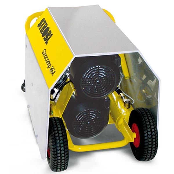 Der STROCOMP 865 ist handlich, robust und somit optimal für den mobilen Einsatz auf Baustellen geeignet. Der STROCOMP 865 ist die leistungsstärkere Variante unserer Kompressoren. Er ist mit zwei Doppel-Kolbenkompressoren und Ansaugfiltern ausgestattet. Große Lüfterräder sorgen für optimale Kühlung der Aggregate und Motoren. Der eingebaute Motorschutz verhindert Schäden bei Überlastung oder Fehlbedienung. Die beiden Druckschalter mit Ein-/Ausschalter und Anlaufentlastung ermöglichen einen automatischen Betrieb. Ist der maximale Druck von 10 bar erreicht, schalten die Kompressoren ab. Sinkt der Druck durch Entnahme von Luft um ca. 2 bar ab, wird automatisch neu gestartet. Durch die Anlaufentlastung ist ein lastfreier, problemloser Anlauf gewährleistet. Der Kompressor ist mit einem Druckminderer, zwei Manometern und einer Schnellkupplungen ausgestattet, die sich hinter einem Armaturenschutz befinden. Der Druckminderer ermöglicht das Einstellen des gewünschten Arbeitsdrucks. Zwei Manometer ermöglichen das gleichzeitige Ablesen von Behälter- und Arbeitsdruck. Der Druckluftbehälter ist mit einem Sicherheitsventil, Behälterdruckmanometer und 2 Kondensatablassventilen ausgestattet.