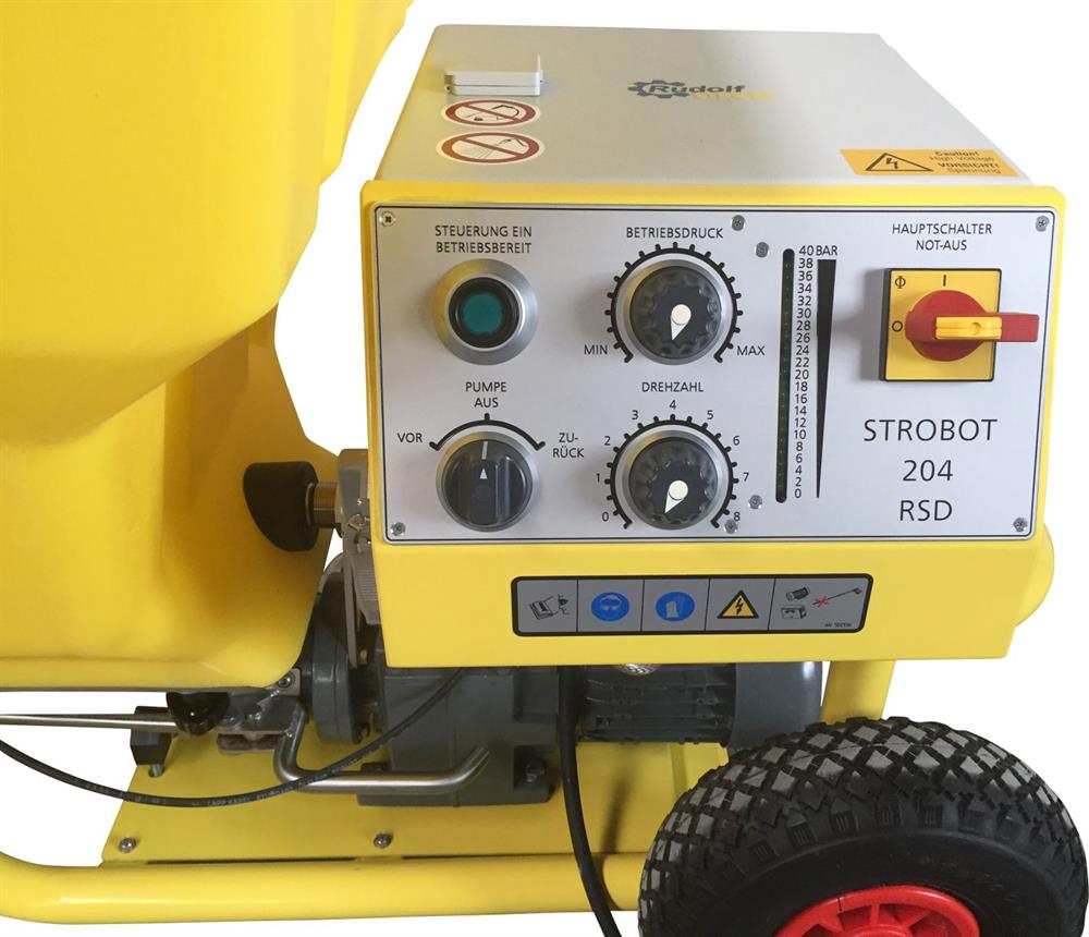 Ein Knopfdruck auf die Kabel-Fernsteuerung an Ihrem Spritzgerät und die STROBOT steht. Sie möchten wieder beginnen? Noch mal drücken und es geht weiter.