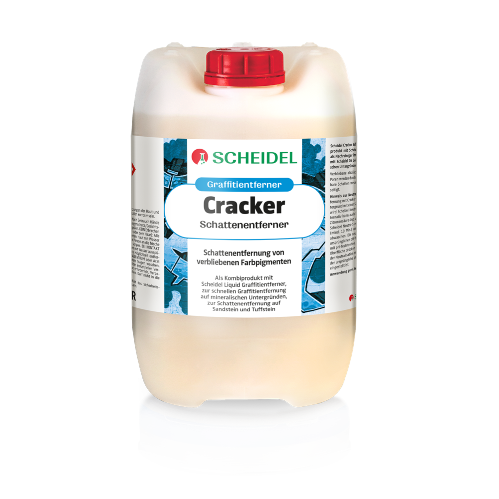 Scheidel Flüssig Schatten- & Graffitientferner – schneller, intensiver Graffitientferner. Löst Graffitisprays sofort auf mineralischen und kurzzeitig lösemittelbeständigen Untergründen. Ideal in Kombi mit Cracker Gel nass-in-nass für porentiefe Schattenentfernung.
